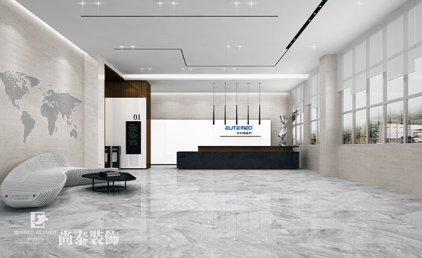 本案为深圳某医疗科技公司办公室展厅装修设计,由深圳装修公司尚泰装饰集团设计团队执行设计。
