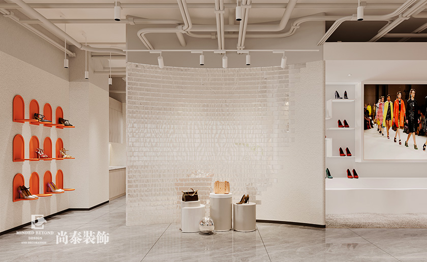 本案系专注女鞋产品外贸的实业公司深圳写字楼办公室装修设计,深圳办公室装修公司尚泰装饰团队以现代网红轻奢、诧寂风为设计格调,以柔美造型、素雅色调构建具有女性特色的办公空间。设计区域范围包含前厅、展厅、茶水区、休闲区、会议室、直播区等。