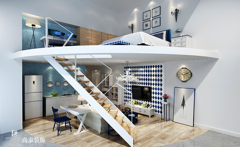 二层Loft做床架,三层复式做两室一厅,整体配套功能标配