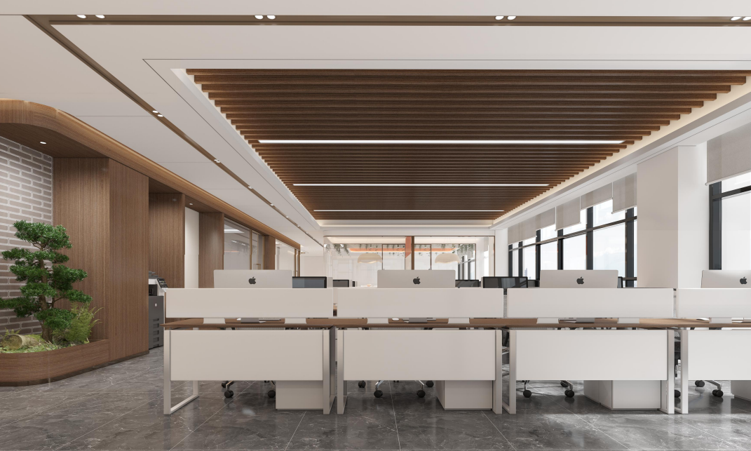 提升办公舒适度:灯光采用 “主灯 + 辅灯” 组合,避免强光刺眼,工位区域照度保持 300-500lux;办公椅区域预留可调节高度的桌下空间,接待区搭配舒适座椅与绿植点缀;墙面可预留白板、展示架安装位置,满足办公与品牌展示需求。