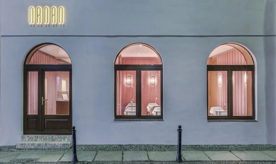 要说到甜,怎么能少得了粉!色!呢!这个空间就是又粉又贵气的设计(气场太强,自动变粉),店铺外面是普通的白墙,透过拱形的窗户可以看向室内,内里采用了粉色天鹅绒来覆盖表皮,粉色是嫩嫩的颜色,天鹅绒高贵大气,这两者的结合真让人拍案叫绝。